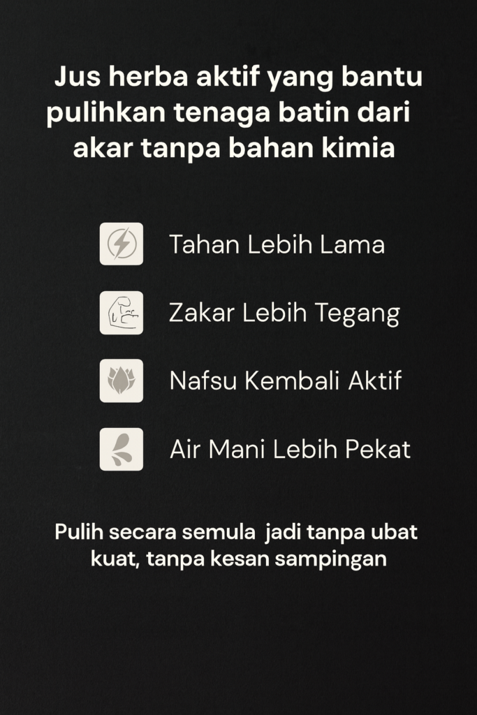 Kerana ia bukan ubat kuat segera, tetapi jus herba semula jadi yang bantu pulihkan tenaga lelaki dari akar.