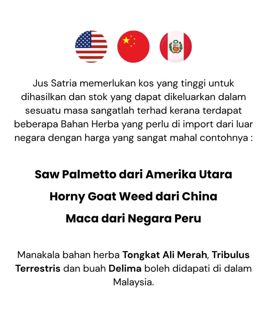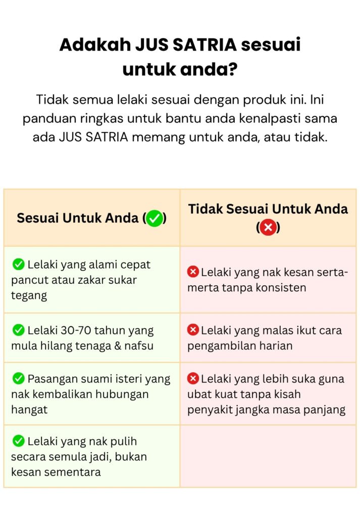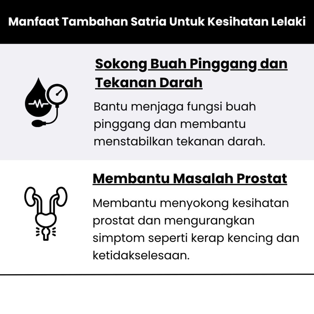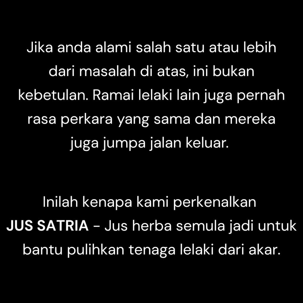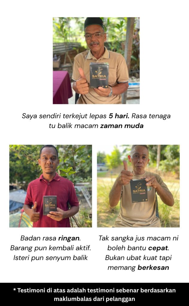 Ya, boleh. Jus Satria selamat untuk majoriti lelaki kerana ia tiada bahan kimia keras. Namun jika sedang ambil ubat hospital, ambil selang 1-2 jam dari masa ubat.