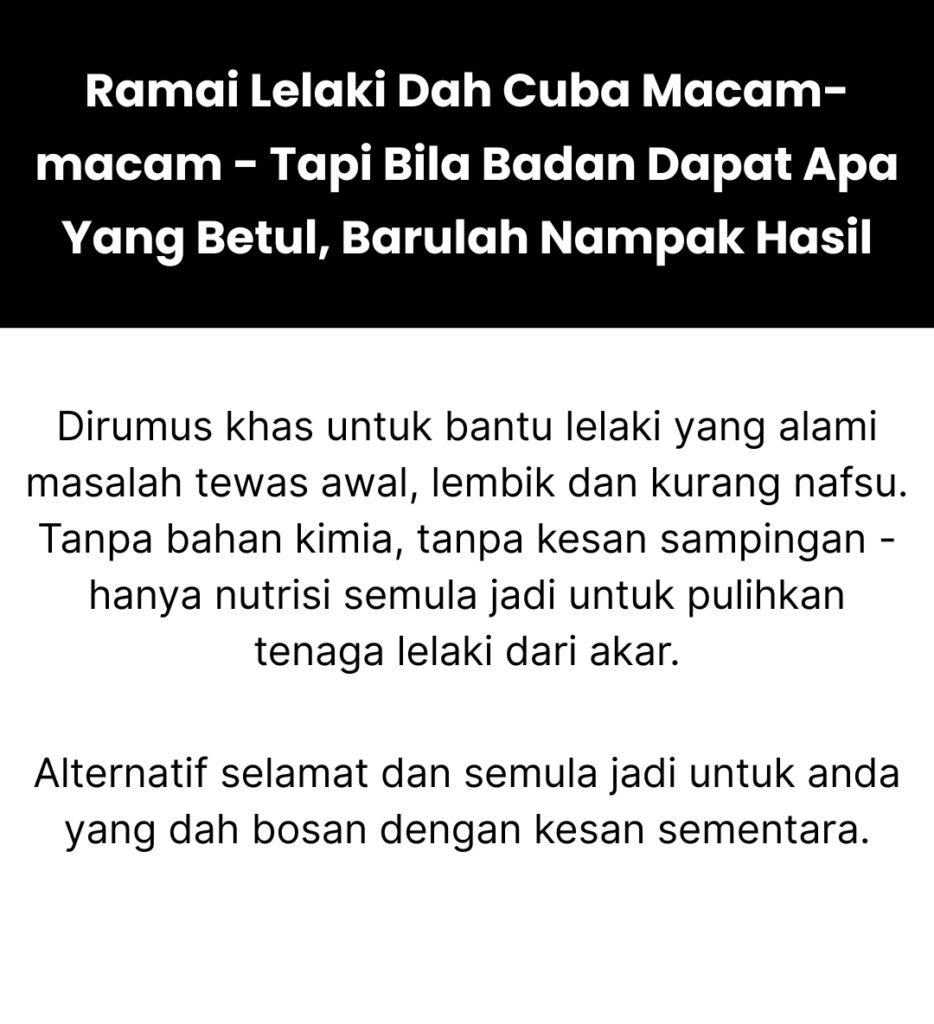 Ia bukan beri kesan sementara, sebaliknya membaiki stamina & aliran darah lelaki dari dalam.